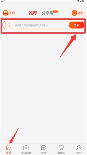 4、在首页搜索框中根据需求输入关键词,然后点击搜索按钮来查找相关商品。