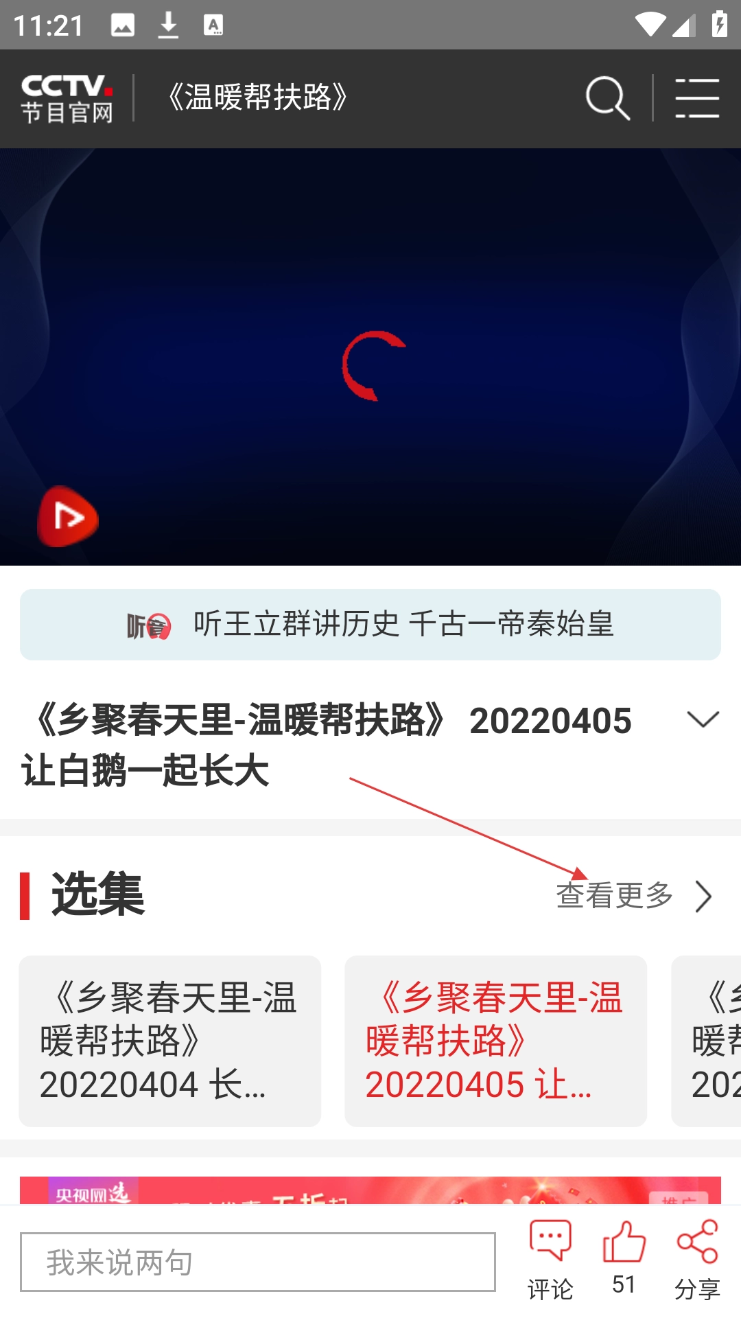 3、在视频播放页点击【查看更多】浏览更多视频内容。