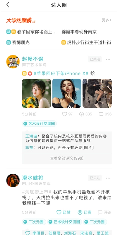 公域社区:打造专属校园文化广场,构建可控可管的校内社区生态;