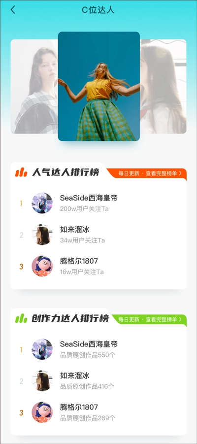 达人秀:汇集创意短视频作品,呈现时尚、新奇、独特视角;