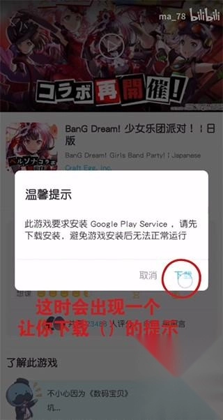 2、此时会弹出一个提示,显示该游戏需要安装Google Play Service,无需理会,直接点击即可;