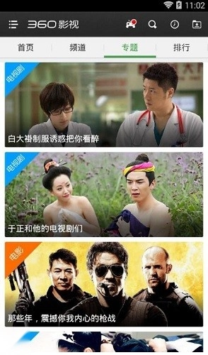 3、360影视大全里的专题是通过关键词对同类型内容进行划分的,用户能够依据自己的喜好搜索感兴趣的专题