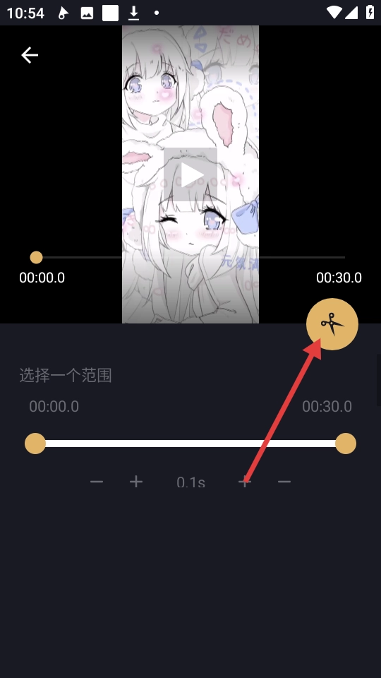 在视频切割界面点击剪刀图标进行视频切割操作。
