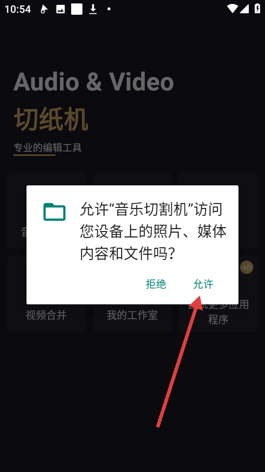 请点击【允许】按钮,以授予“音乐切割机”访问您设备上照片、媒体内容及文件的权限。