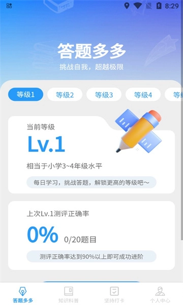 王者答题多软件分享给大家,非常不错的知识科普软件,以答题闯关的形式开启教学,提升大家对学习的兴趣,在答题的过程中挑战自我,超越极限!