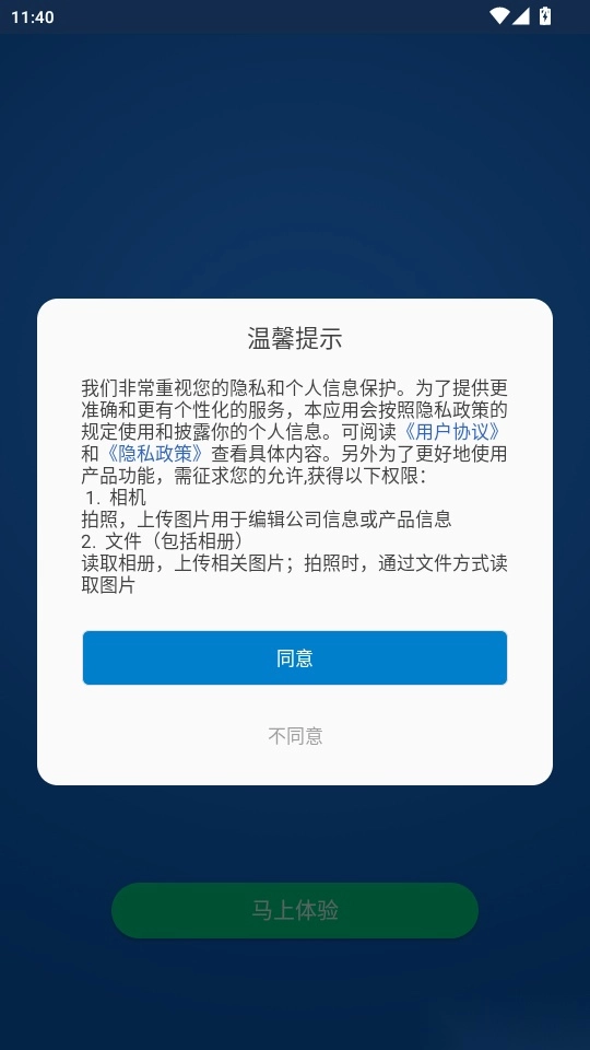 打开软件阅读“温馨提示”点击“同意”进入