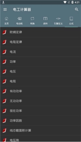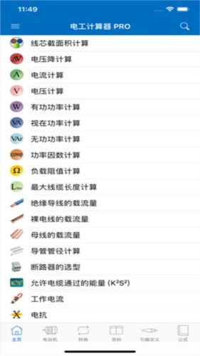 安装本站提供的电工计算器软件,进入软件后能看到主页包含诸多功能。