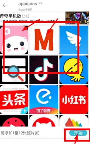 在页面里,选择您想拼接的照片,点击“开始”按钮进入编辑模式。