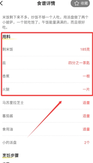 智能食材匹配功能:输入厨房现存的食材后,系统会自动推荐适配的菜谱,从而降低食材浪费情况,同时还支持菜谱教程的收藏以及个人菜单的管理操作。