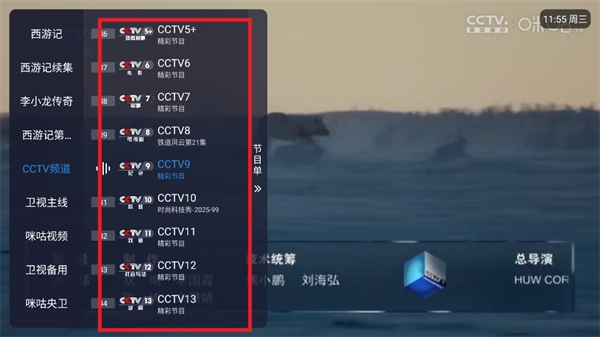 点击屏幕左侧弹出电视节目栏