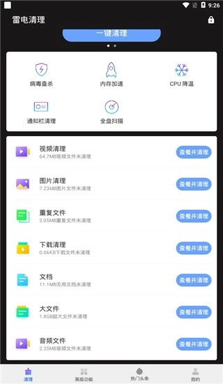 雷电清理管家是一款专为追求高效手机使用体验的用户打造的安卓系统清理、提速与加速工具应用。它不仅具备深度清理垃圾文件、缓存数据以及无用APK安装包的核心功能,还提供了电池管理优化、应用锁等贴心实用的附加服务,前者能有效延长手机续航,后者则为个人隐私安全筑牢防线。经过精心设计与多次迭代,该软件的用户体验得到显著提升,操作流程流畅自然,界面布局合理,即便是初次使用的用户也能迅速上手,展现出极高的可操作性和可靠性。
