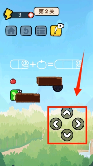 右下角的箭头能够操控贪吃蛇朝向上、下、左、右四个方向移动。