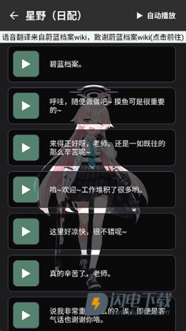 这款软件收录了《蔚蓝档案》里的绝大多数语音内容,不仅包含日语配音和中文配音,还覆盖了日常对话、战斗语音等多种类型。