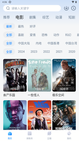 2、在软件首页可以按照“电影”“剧集”等分类,选择地区、年份,浏览并点击目标影片。