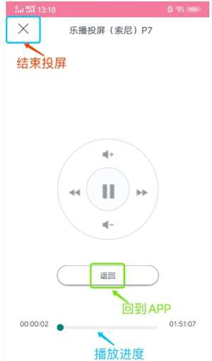 投屏成功后,可通过遥控器按钮来操控影片的播放进度、调节音量大小,也能借此退出投屏功能。