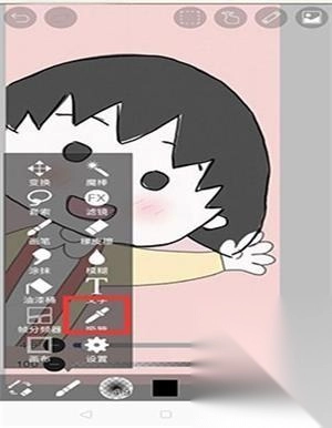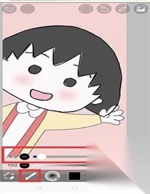 4、用画笔将小丸子的轮廓描出来。
