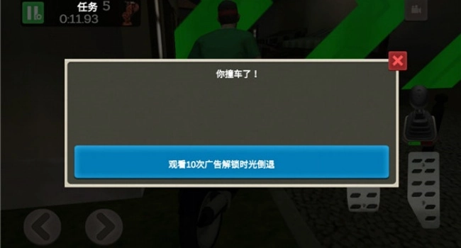 驾驶车辆时要注意避开建筑物和行人,一旦发生碰撞就会任务失败,这时候可以借助时间回溯道具来重新进行游戏。
