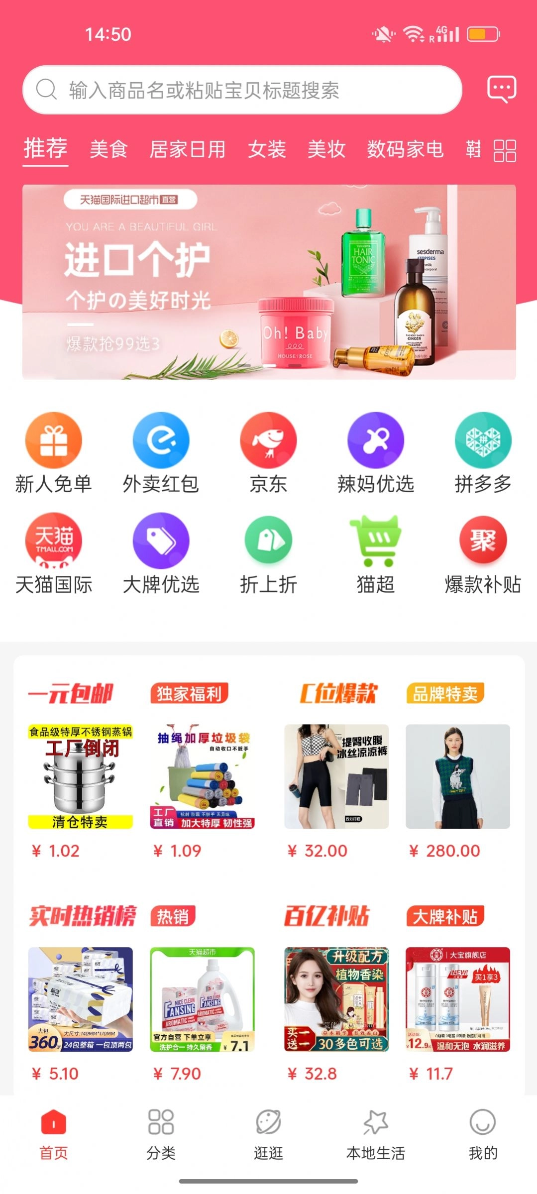 每个人的首页版块各有不同,并且每天都会更新不一样的特价商品。