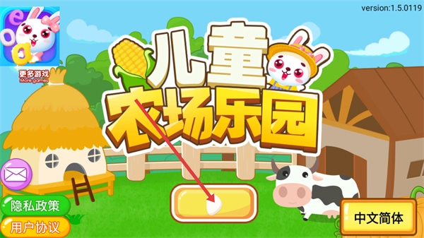 1、点击界面上的黄色按钮,进入【儿童农场乐园】的主界面,启动农场相关的互动操作流程。