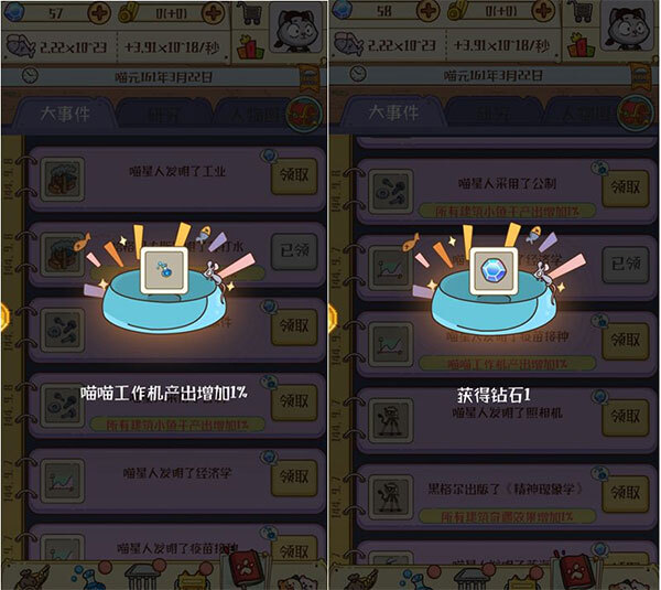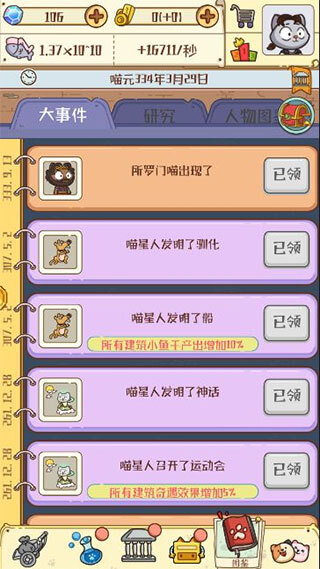 首先来看大事件板块。在这个页面里,你能清晰了解喵星发展历程中的关键印记,不管是科技方面的进步、时代的更迭,还是新建筑的落成,差不多所有重要举动都会在大事件中有所记载。