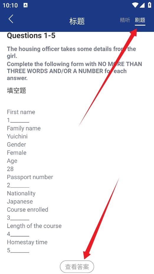 点击练习类型的封面即可进入对应页面,就像图中展示的那样,这里包含了丰富的听力真题与文章列表,接着点击右侧的耳机图标就能进入收听界面了。