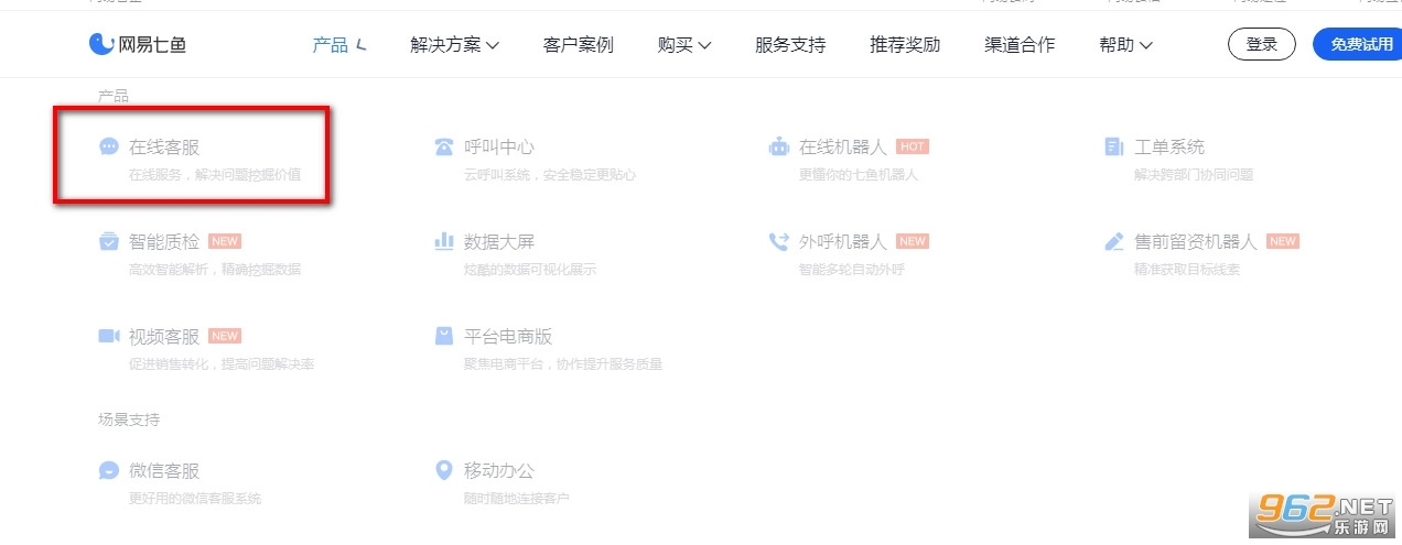 打开网易七鱼正版官网(网址是https://qiyukf.com/),然后找到【在线客服】入口。