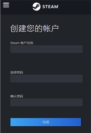 验证完成后,回到蒸汽平台,输入账号名称和密码,然后点击“完成”按钮。