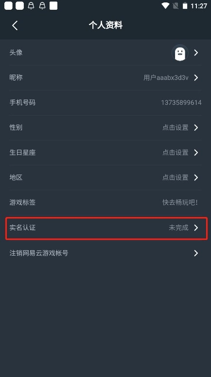 登录网易云游戏平台,点击出现的“实名认证”。