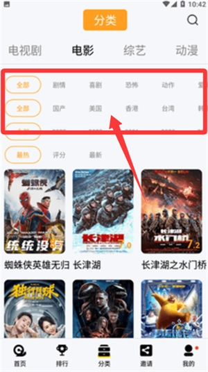 可以切换到页面底部的“分类”栏目,借助类型或者标签来筛选自己感兴趣的影视作品。