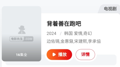 打开电影先生应用,找到你感兴趣的影视剧并点击进入,比如《背着善在跑吧》这部作品。