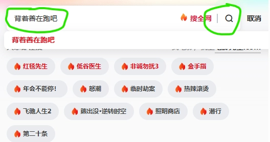 输入你想看的影片名称,比如《背着善在跑吧》,接着点击右侧的搜索按钮(也可以直接点击下拉列表里红色对应的名称)