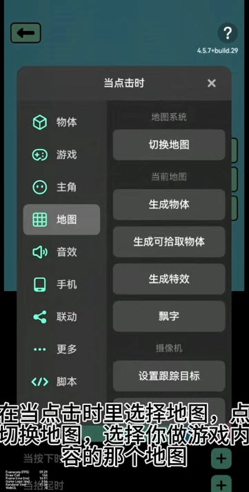 你可以选择“当点击时”这个触发条件来切换地图,切换后显示的地图就是你制作游戏内容时所用的那个地图。