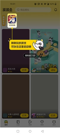 首先完成摸摸鱼的首次安装,接着进入主页面挑选自己想玩的游戏。
