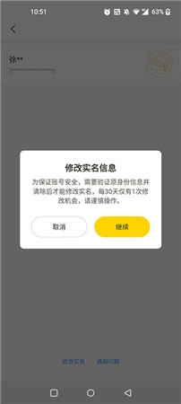 接下来会出现修改实名信息的情况,且每30天仅能获得一次实名修改的机会。