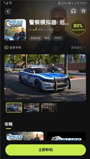 进入游戏详情界面后,你可以查看游戏介绍以及相关的攻略内容,点击【立即秒完】按钮就能直接开始游戏了。