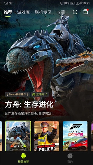 打开3A云游后,即可进入包含推荐、游戏库、联机专区与收藏频道的应用主界面,在当前所处的推荐频道中,能浏览到系统推荐的各类游戏。