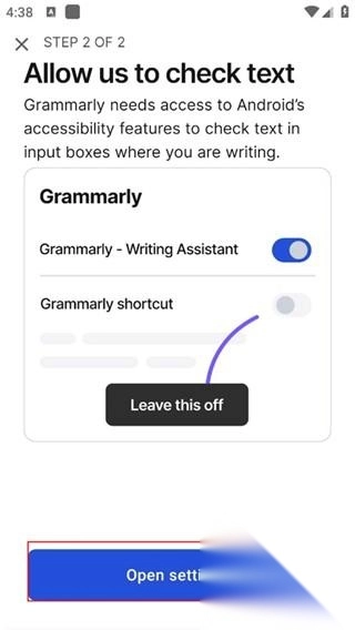 在本站Grammarly 后,点击下方的open settings;