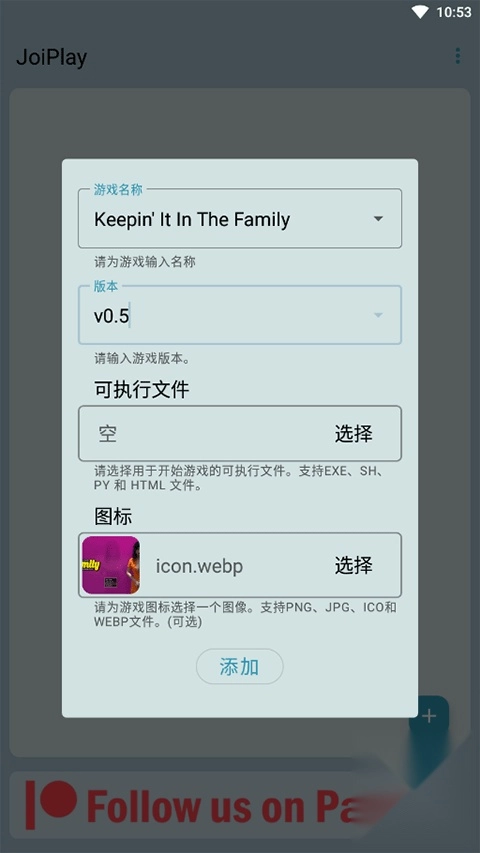 2、选择游戏名称、版本、执行文件,点击添加即可。