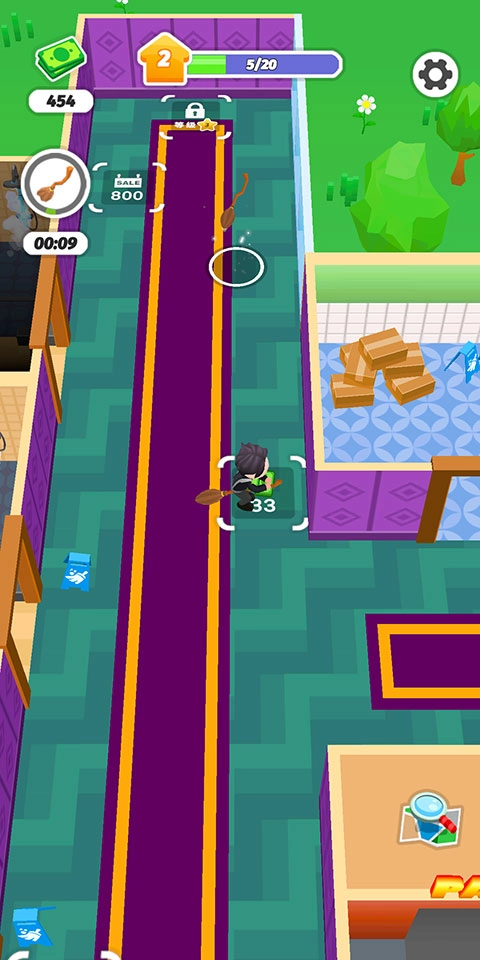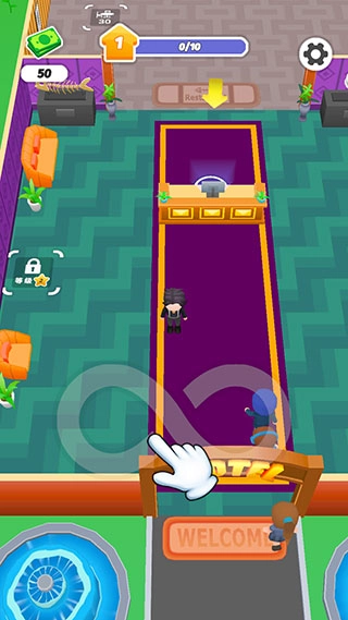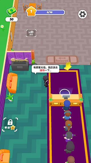 若要招募员工,需先解锁足量设施,再在指定区域消耗钞票进行招募。