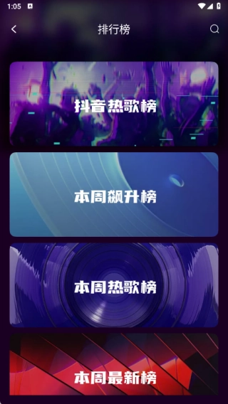 在排行榜页面能够查看抖音热歌榜、本周飙升榜、本周热歌榜和本周最新榜的相关信息。