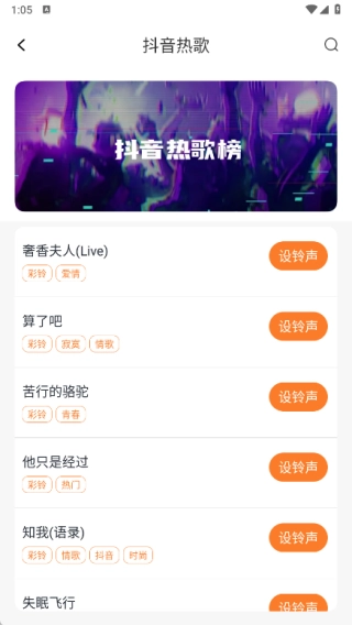 在抖音的热歌页面里,能看到各种各样最新的热门歌曲,用户还可以快捷地将喜欢的歌曲设置成铃声。