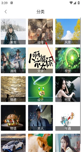 在分类页面中,你可以选择动漫分类,同时界面上还设有美女、风景等多个其他分类,你可以根据自己的喜好进行选择。