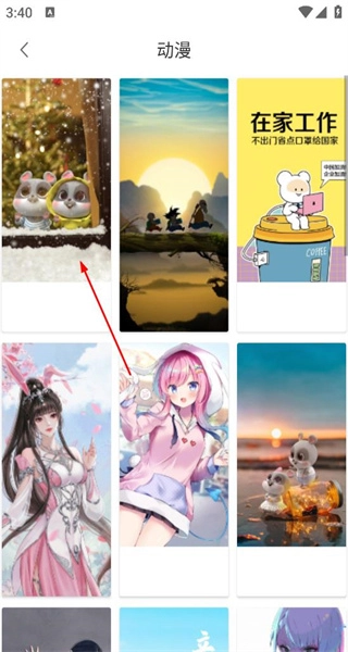 进入动漫壁纸列表,挑选带有两只松鼠的雪景壁纸,界面呈现多款动漫风格壁纸,画面十分精美。