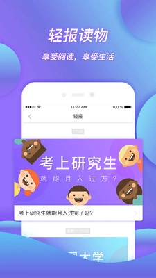 针对当代大学生的社会生活需求,我们专注打造贴合大学生群体的专属功能模块,涵盖【社区分享】【好文推送】【精选好物】等内容。力求从生活、学习、休闲、社交等多个维度,为大学生群体提供一站式的手机应用服务。在美好的大学时光里,你所渴望的、所需要的,轻逛始终陪伴着你。