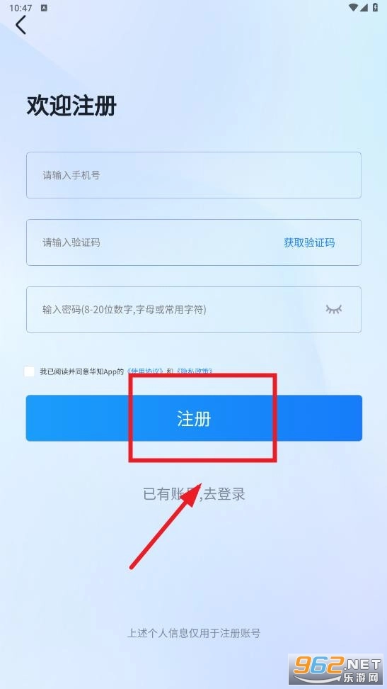 输入手机号,验证码,密码,点击注册
