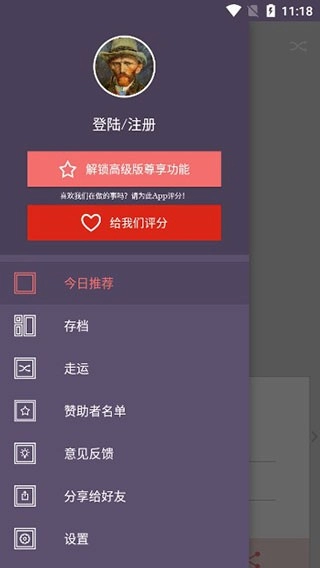 登录之后,整个界面就变得清爽了,这样就能静下心来欣赏每日的艺术之美啦!