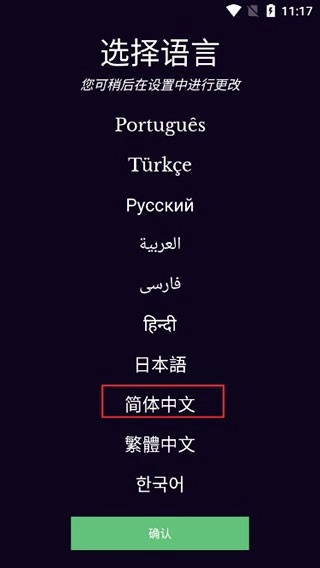 用户能够选择“简体中文”,点击该选项就能切换界面语言。