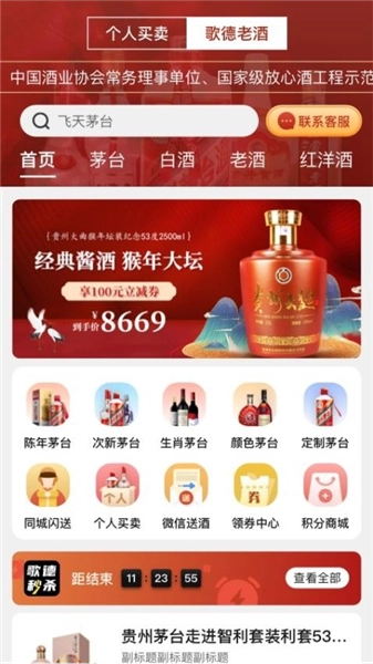 提供白酒、茅台以及老酒和红洋酒的售卖