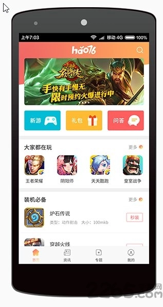 hao76网客户端是一款手机游戏媒体平台软件,专注于为用户提供贴心服务!在这里,你能找到海量游戏资源与游戏礼包福利,UI界面简洁,且干扰!感兴趣的朋友欢迎前往本站!