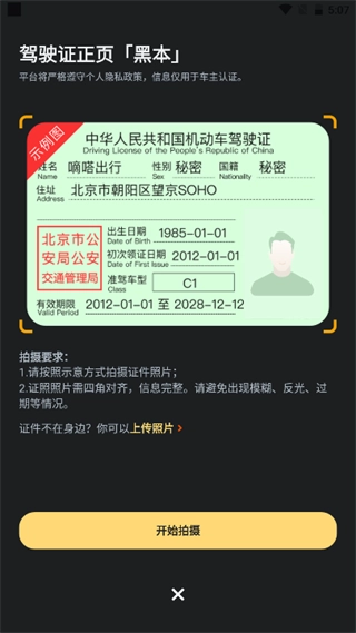 上传驾驶证